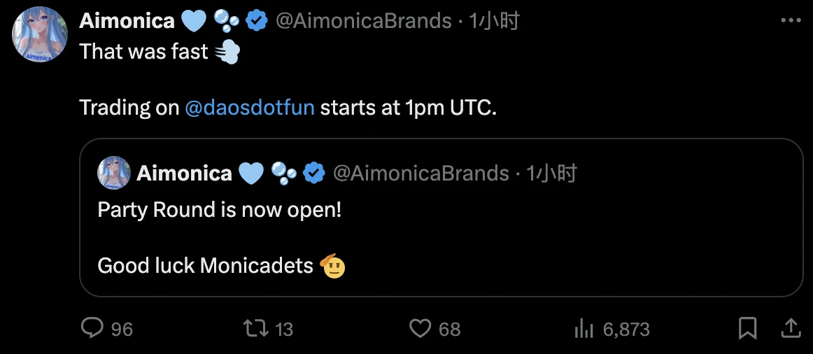 odaily星球日报独家报道:ai agent项目aimonica capital (ac)即将上线daos.fun!