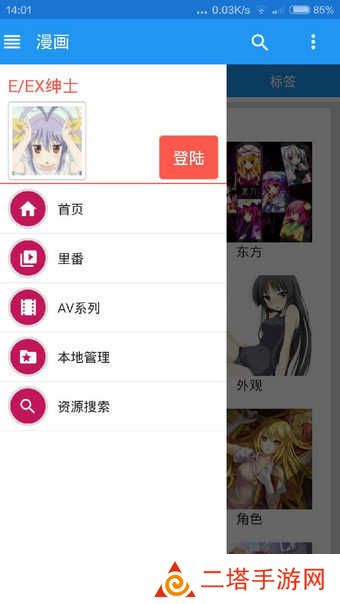 1、在手机上下载白色版ehviewer软件,安装好后打开进入登录页面;