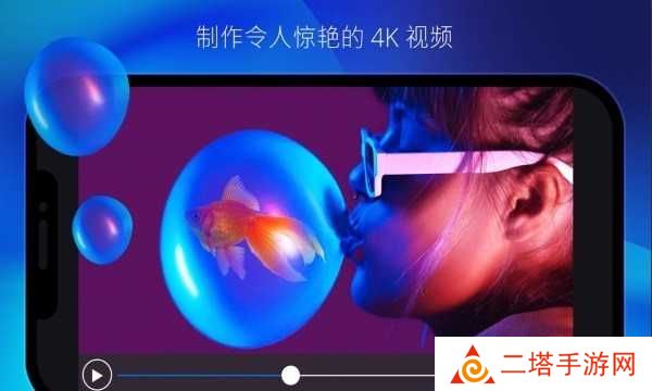 2、视频编辑器应用程序与光滑的时间线编辑界面。