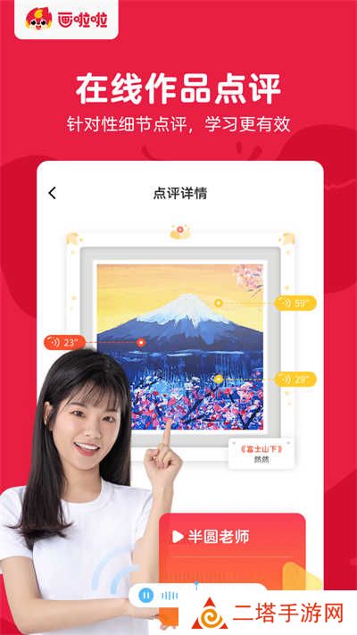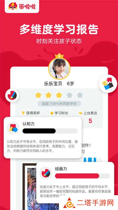 画啦啦美术课堂是一款专为儿童设计的互联网美术教育产品,旨在通过现代少儿美术教学方法来培养孩子的想象力和创造力。这款软件鼓励孩子们自由创作,采用寓教于乐的方式,让学习变得更加有趣和互动。感兴趣的朋友们,快来点击下载按钮试试吧。