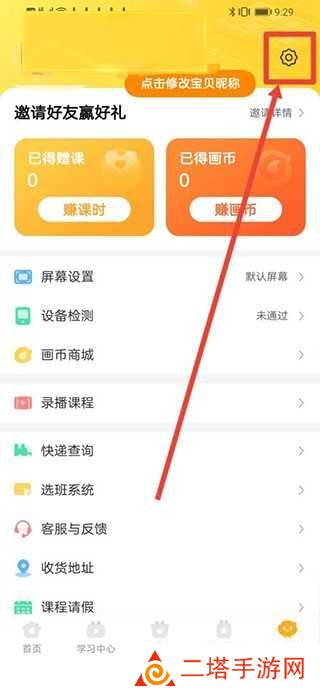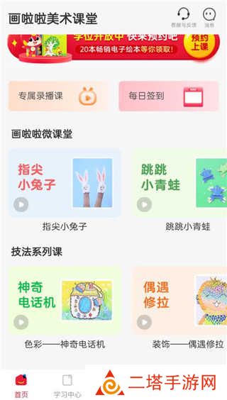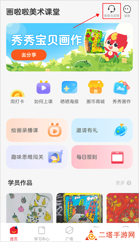1、打开画啦啦少儿美术app,点击右上角“客服与反馈”