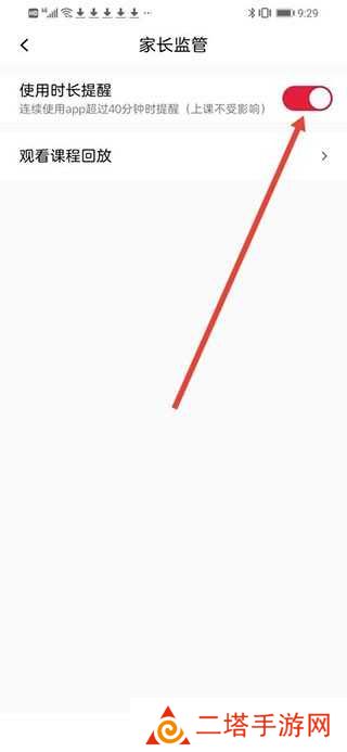 5、来到家长监管页面,然后把【使用时长提醒】的按钮开启即可。