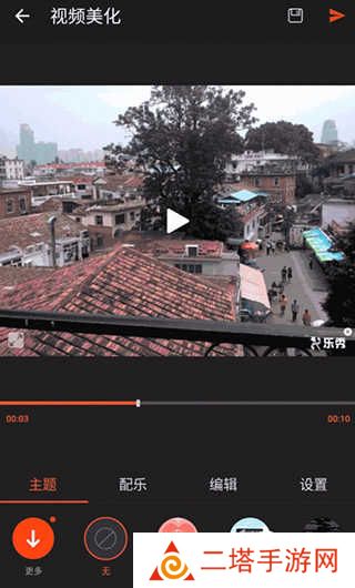 2、使用主题能够快速应用该主题已搭配好的音乐/转场/滤镜