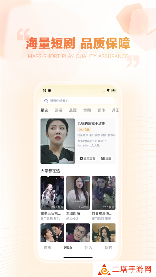 剧有引力是一款专注于短剧内容的移动应用,我们精心挑选高质量的短剧,以适应现代观众的快节奏生活方式。