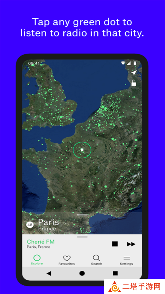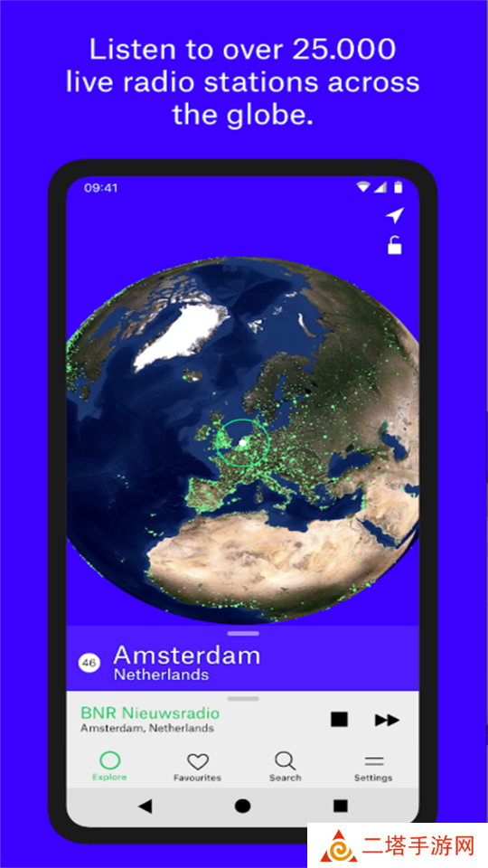 电台公园是一款可以为用户进行贴心服务的手机客户端。无线电花园允许您通过旋转地球来收听全球数千个实时广播电台。每个绿点代表一个城市或城镇。点击它以收听从该城市广播的广播电台,快来下载哦!