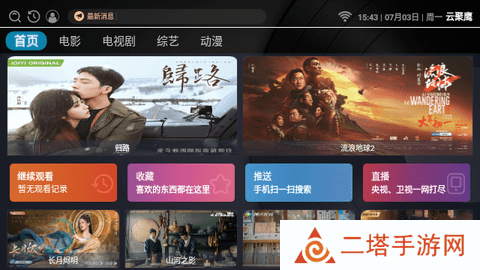 1.打开云聚鹰TV之后,我们可以在云聚鹰TV上发现下图所示的内容,这里拥有电视剧,电影,动漫,综艺等节目