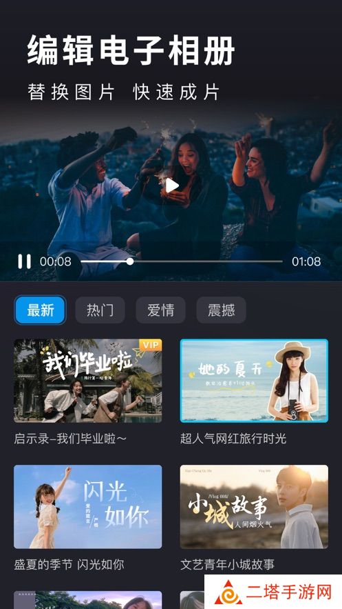 汇声绘影app是一款视频制作编辑助手,软件拥有多样视频模板,炫酷视频特效,精美配乐,字幕编辑,分享等等丰富功能,可以让用户轻松高效制作视频。