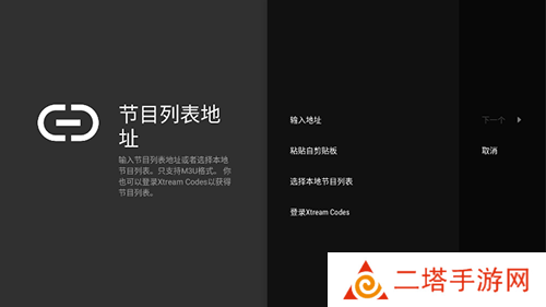 3、然后在输入地址栏中输入“//www.sharerw.com/zb/1203.m3u”,然后点击下一个;