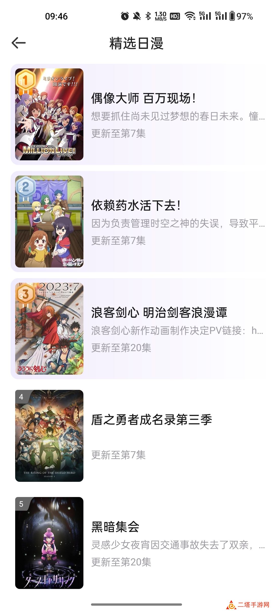 1、列表中会及时展现最新的动漫资源,可以轻松找到你喜欢的动漫
