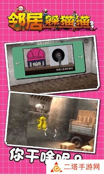 2. 躲猫猫挑战:玩家需要在邻居家中进行躲猫猫,利用各种隐蔽的地点和道具来躲避邻居的追捕。同时,玩家还需要解开各种谜题,寻找关键的线索和道具。