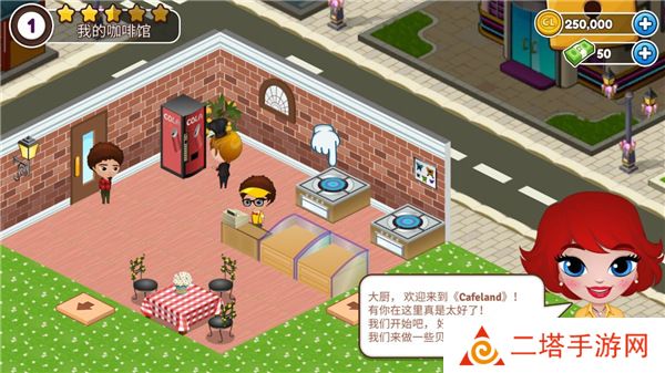 2. 装饰咖啡馆:玩家可以使用数百种华丽的装饰物品来设计和装饰自己的咖啡馆,从地毯、壁纸到海报、柜台和地板,都可以自由搭配,打造独一无二的咖啡馆风格。