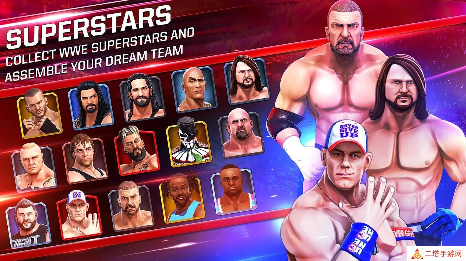 1. 角色选择:游戏收录了众多WWE摔跤巨星,包括John Cena、The Rock、Brock Lesnar等,每位角色都拥有独特的外观和技能,玩家可以根据自己的喜好进行选择。