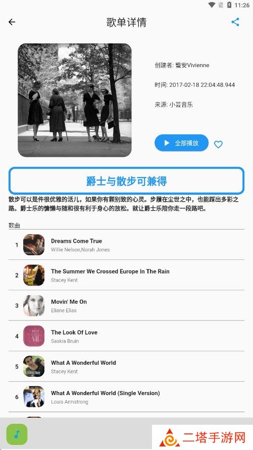 歌单助手app是一款手机音乐播放器,软件拥有海量音乐资源,播放高清流畅,可以给予用户超棒的音乐体验,觉得不错的朋友欢迎前来下载使用。
