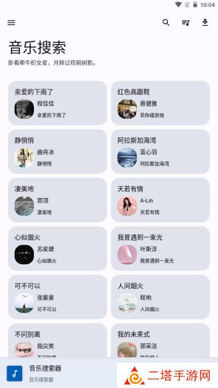 音乐搜索app是一款专门搜索歌曲的软件。该软件整体界面是非常简洁的,内置海量音乐资源库,小伙伴们可以根据个人需求进行搜索获取,以及支持自定义打造专属歌单,听你想听,全网音乐免费听,支持在线听和离线听。喜欢的小伙伴们快来下载音乐搜索体验吧!