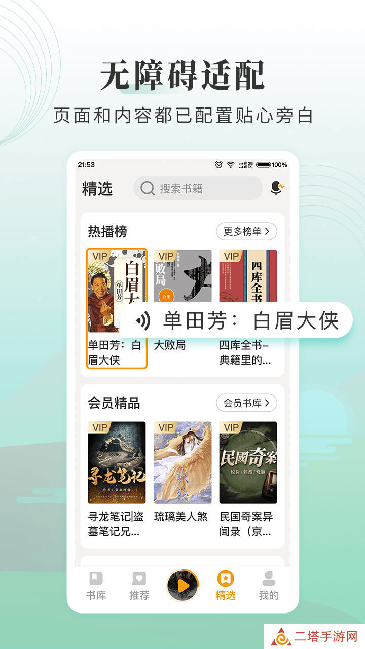无广告:页面清爽,没有烦人的广告干扰,听书更放心。