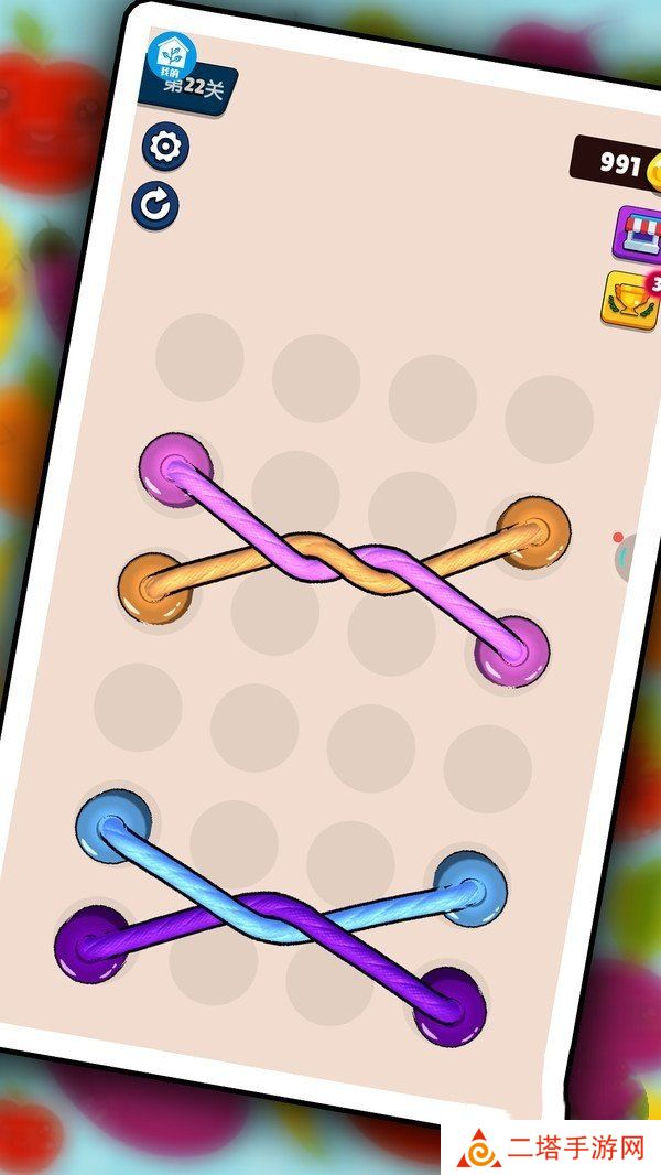 5. 挑战高分:完成关卡后,根据解开绳索的步数和用时,获得相应的评分,挑战更高分数。