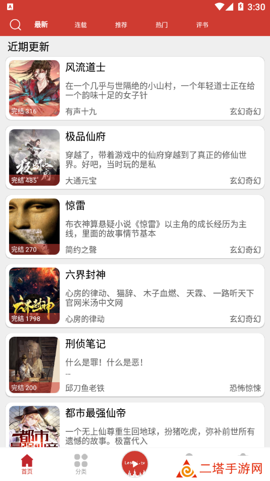 3.所有的小说都进行了详细的分类,方便用户进行快速的寻找。