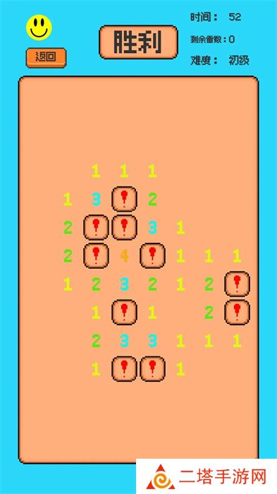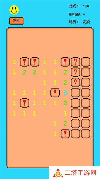 3. 丰富提示:主游玩场景包含重开、返回和三个显示当前模式的提示(游戏时间、难度和剩余雷数),帮助玩家更好地掌握游戏进度。