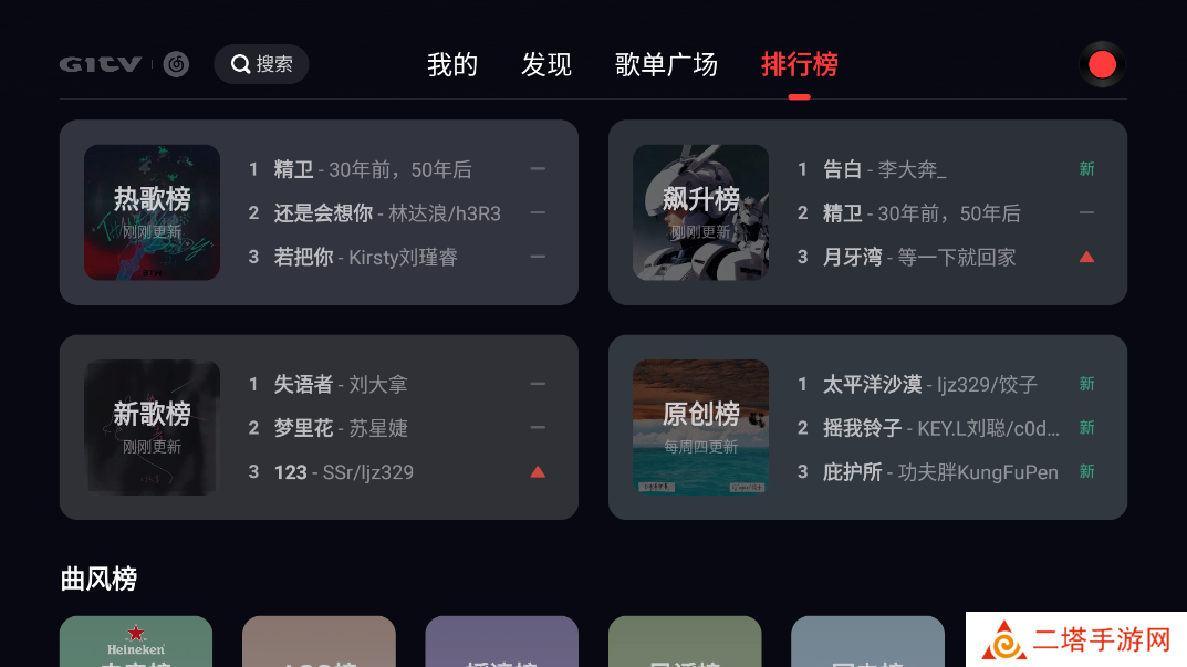 2、TV版将网易云音乐新歌热歌榜、歌单广场、视频广场这些汇集热门优质音乐内容的功能也带给了大屏用户,用户每天可以在这些板块寻找最新最热门的好音乐,优质音乐内容从此随手可得。