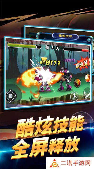 1. 操作指南:玩家通过虚拟摇杆控制机甲移动,使用屏幕上的按钮进行攻击、防御、跳跃和释放特殊技能。不同机甲拥有独特的技能组合,需灵活操作以应对各种战斗场景。