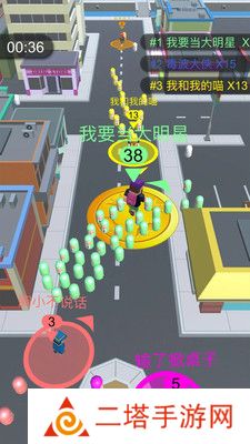3. 竞技对战:当遇到其他玩家时,你可以指挥自己的粉丝去攻击对方的粉丝,成功吞噬对方后,对方的粉丝将加入你的队伍。