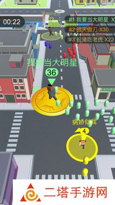 3. 操作控制:通过滑动屏幕来控制角色在城市中移动,收集零散的路人作为粉丝。