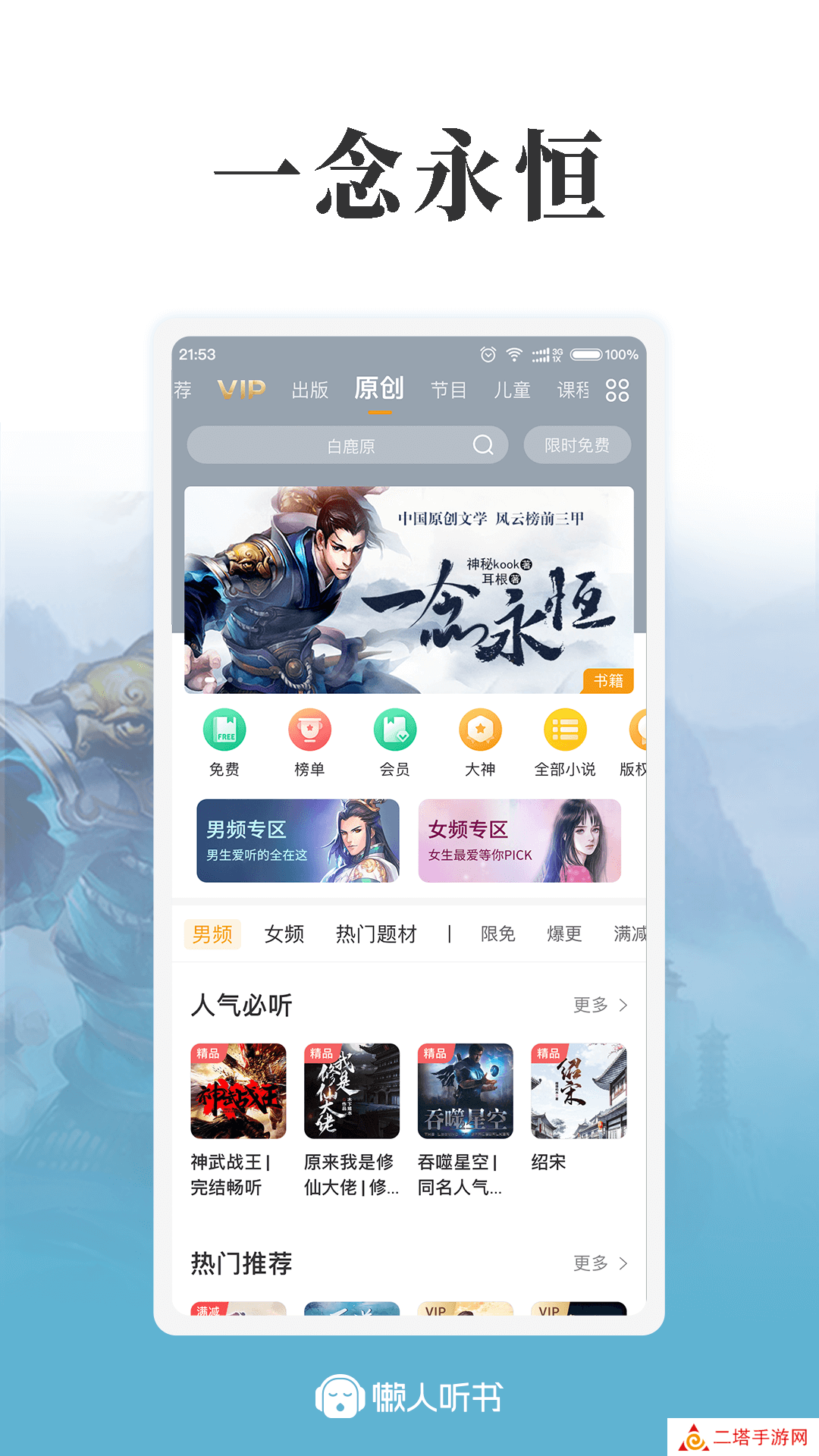 懒人听书高级版完成了有声数字内容的录制、发行与传播的完整生态链,拥有海量小说、评书、娱乐、教育、广播剧、资讯、电台节目等正版有声内容,是国内著名的有声数字内容交流平台。