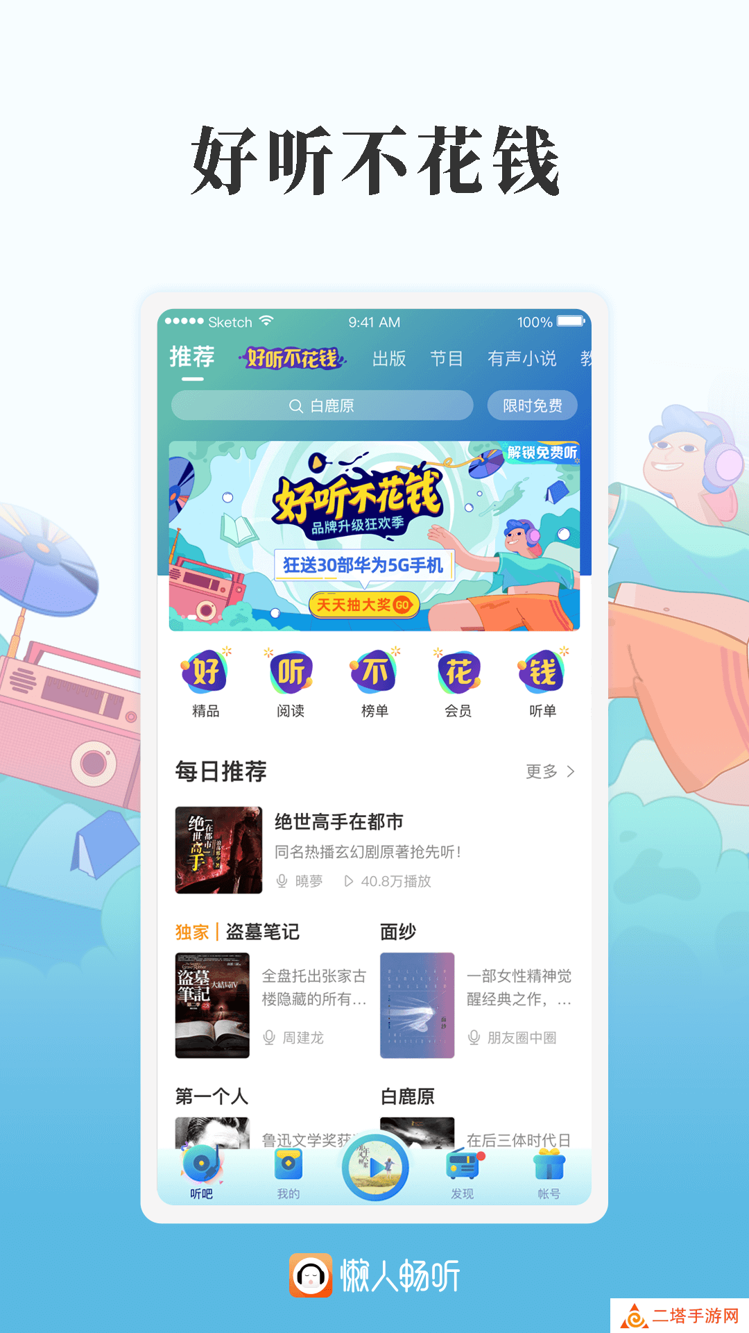 懒人畅听深受广大用户喜爱的移动有声阅读应用,4亿注册用户,4千万月活跃用户,是有声阅读领域的佼佼者!