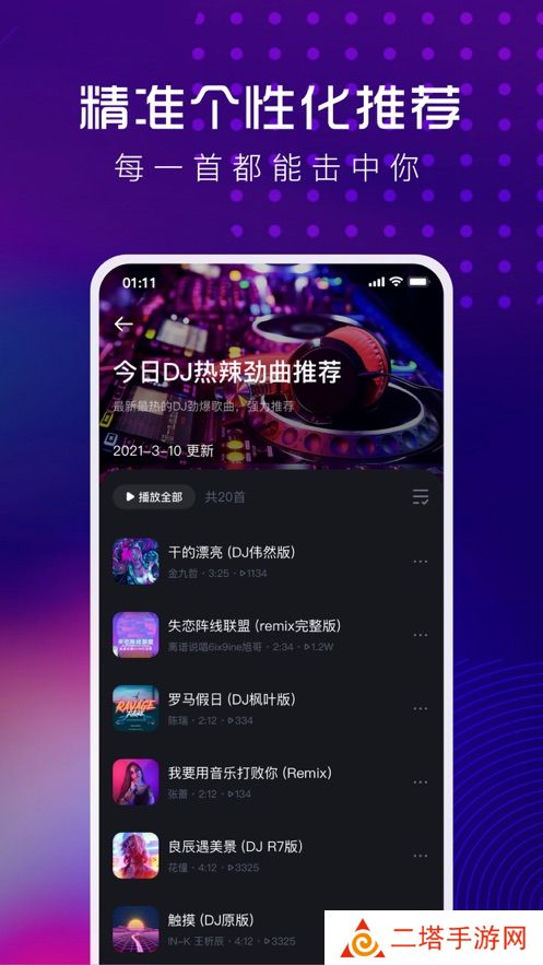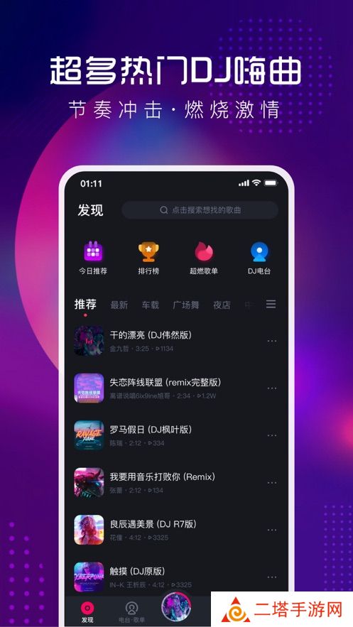 根据您的听歌喜好和口味,每天为您推荐不同的DJ舞曲,相信每一首都能击中你!