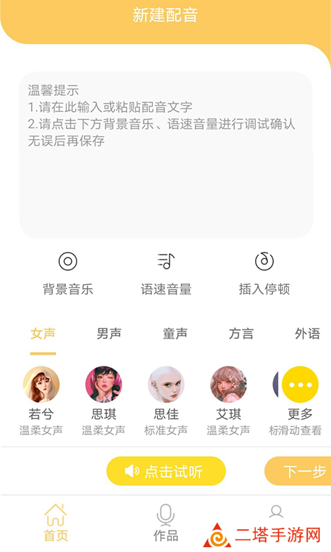 智能配音大师app是一款配音服务的软件,操作简单,超多功能都可以在软件内直接使用,轻松帮你完成各种配音,让您随时随地的发布自己的配音作品,还有多种实用的玩法等你来解锁,让你轻松享受各种便捷的功能,感兴趣的朋友可以下载体验。