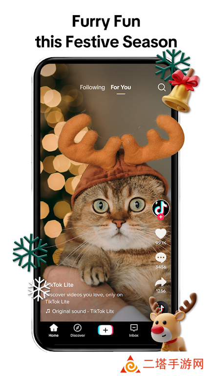 厌倦了千篇一律的圣诞祝福语?使用 TikTok Lite 体验新鲜感!借助我们以圣诞节为主题的特效和装饰,再加上大量的圣诞颂歌、歌曲和音乐,您可以创建并分享您自己独特的圣诞祝福视频。