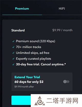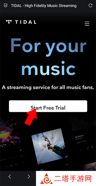 1、首先需要先至官网(tidal.com)注册tidal账号,来到官网后点击start free trial按钮(注册过程中需要ip非国内)