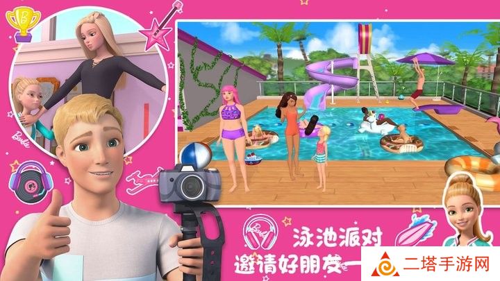 2. 时尚服装设计:海量的服装、饰品供玩家选择,自由搭配,打造独一无二的芭比造型。