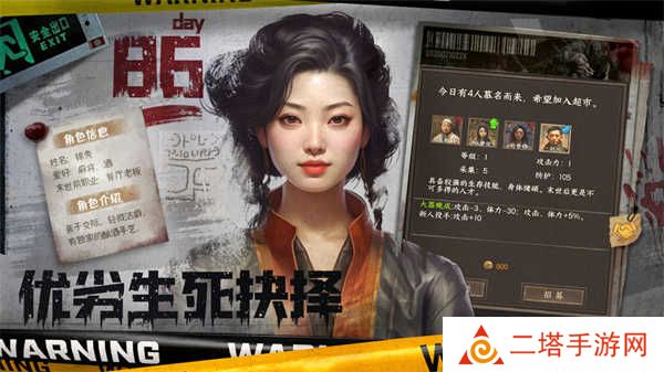 3. 幸存者招募:招募不同技能和背景的幸存者加入超市团队,他们将在经营、防御、探索等方面发挥重要作用。