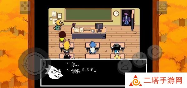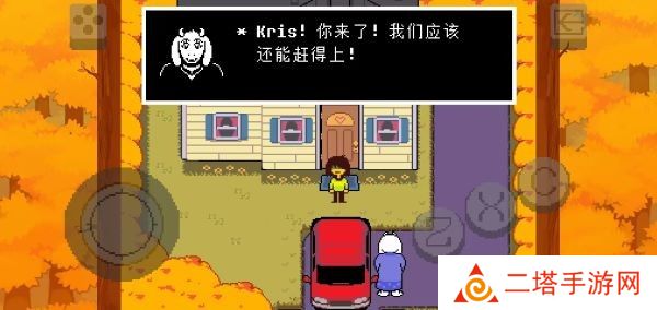 3. 进入游戏:正式进入游戏后,玩家将控制Kris起床出门去学校,通过滑动左边的控件移动角色,并切换场景。