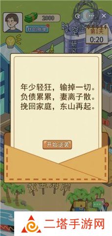 4. 经营与逆袭: 玩家可以通过打工、经营等方式获取财富和资源,逐步提升自己的社会地位和财富水平,最终实现人生的逆袭。