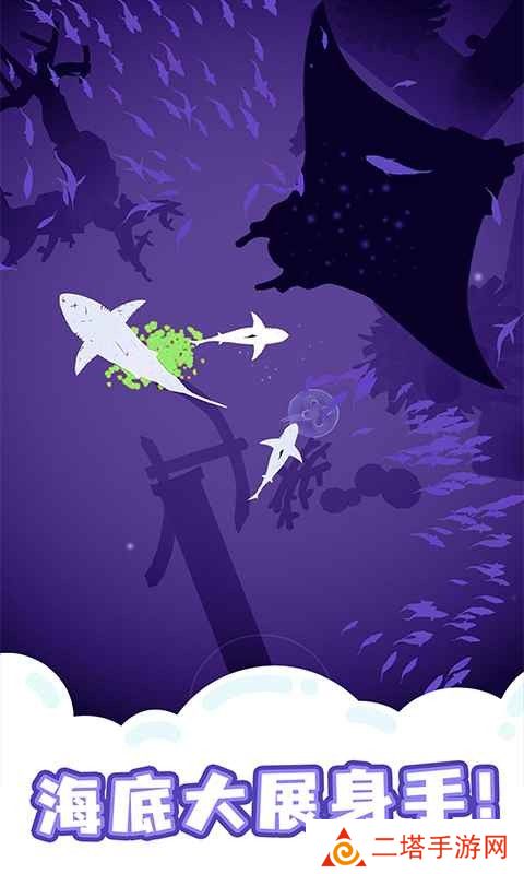 3. 鲨鱼种类:游戏中有多种鲨鱼种类,从小型的礁鲨到巨大的大白鲨,每种鲨鱼都有其独特的攻击方式和行为模式,增加了游戏的挑战性和趣味性。