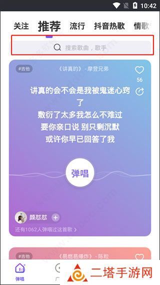 1、下载安装好后打开弹唱达人,输入歌曲或歌手进行搜索需要弹唱的歌词曲谱;