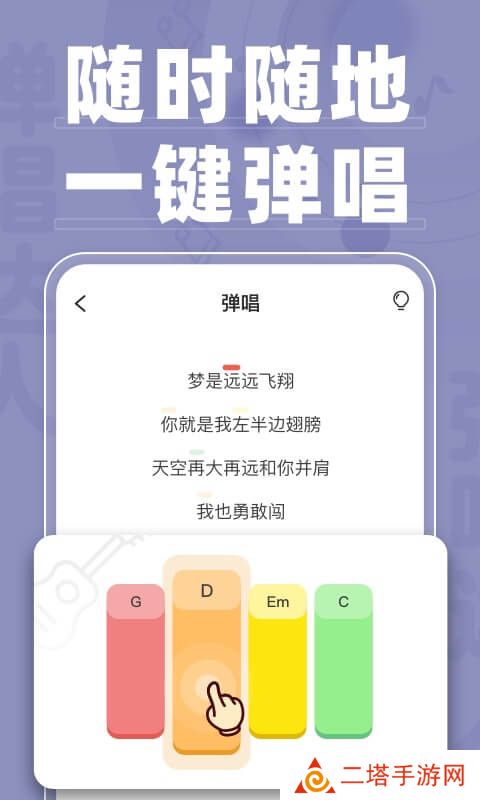 弹唱达人app是一款为喜欢唱歌弹奏的你设计的一款伴奏软件,给你一个完美的音乐体验,配上你动听的歌声,你也能成为一个音乐创作人,友好的交互界面配上简单好用的弹奏功能,你也能轻松创作出属于你的音乐歌曲,喜欢这款伴奏软件的用户赶紧下载吧。