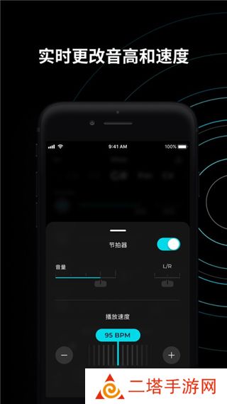 4、音频速度转换器:点一下即可放慢或加快速度。Moises App会自动侦测并显示BPM。