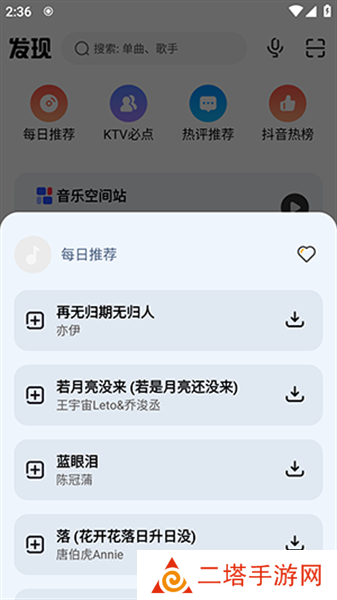 1、音乐搜索:用户可以通过关键字、风格、歌手、歌名等多种搜索方式进行搜索,全网搜歌轻松搞定。