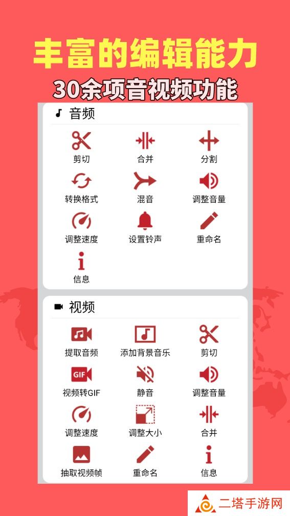 音乐视频助手app是一款非常功能非常强大使用的音频编辑工具软件,这款软件内置拥有超多强大的功能可以对音频进行视频/音频拼接、变速、剪切、重命名、大小调整等等功能操作。而且全都是供大家免费使用,操作也非常简单容易上手的。感兴趣的朋友快赶紧来下载使用吧。