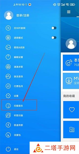 1、在本站下载软件,然后右滑到菜单界面,找到扫描歌曲的选项