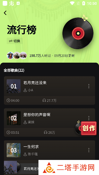 2、接着点击感兴趣的榜单可以看到许多的歌曲