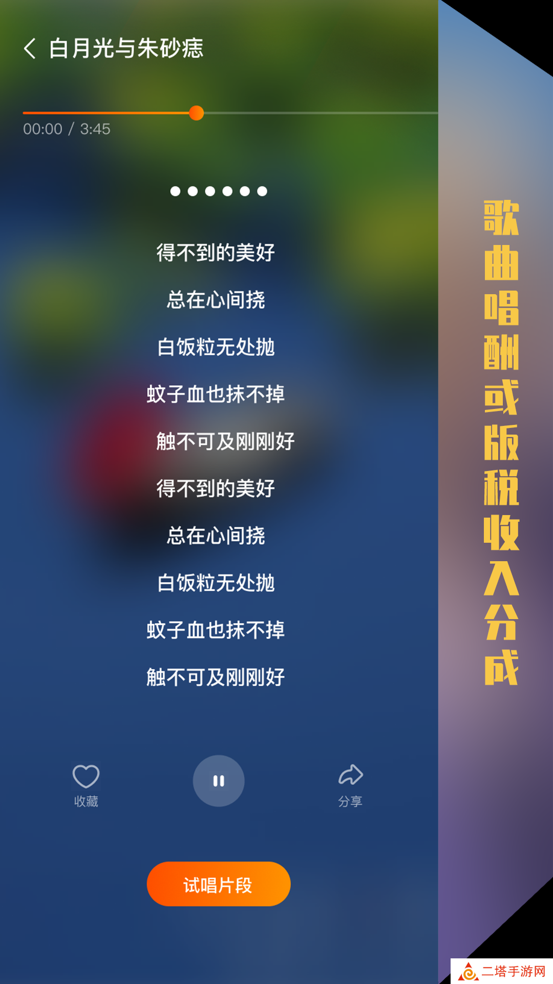 1、支持歌曲免费分享,你可以在线去收听,非常的方便,一键分享歌唱内容,让朋友听到。