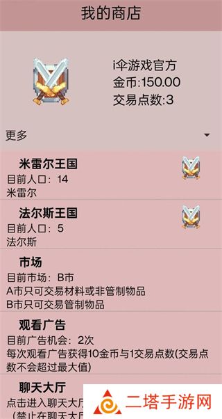 3. 市场交易:游戏中有A市和B市两个市场,玩家需要在两个市场之间进行资源交易,根据市场趋势制定经济策略,以获取更大的利益。同时,玩家还可以与商人进行讨价还价,获取稀有的武器和装备。