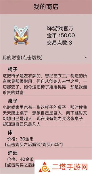 米雷尔的武器商店3是一款文字类型的模拟经营与冒险结合的游戏。玩家将扮演武器店老板米雷尔,在异世界中经营自己的武器店,通过售卖武器、参与战斗、完成任务以及市场交易,不断扩大自己的产业规模,并提升自己的战斗实力。游戏以丰富的文字描述构建了一个充满奇幻与挑战的异世界,让玩家在经营与冒险的双重体验中享受乐趣。