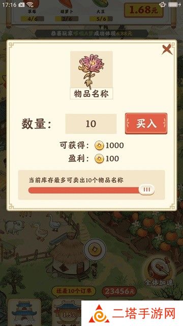 3. 订单交易:游戏中设有订单系统,玩家需根据订单需求种植或养殖特定产品,完成后可获得丰厚奖励,包括红包和庄园积分。