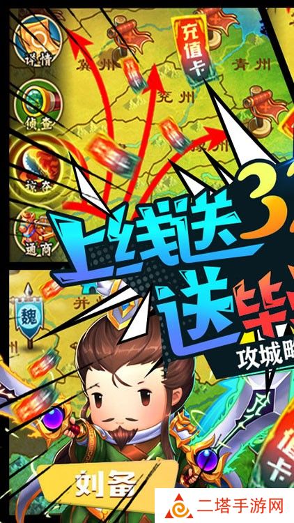 2. 武将招募:游戏中收录了众多经典的三国名将,玩家可以通过招募系统获得这些武将,并为他们分配任务和装备,提升他们的战斗力。