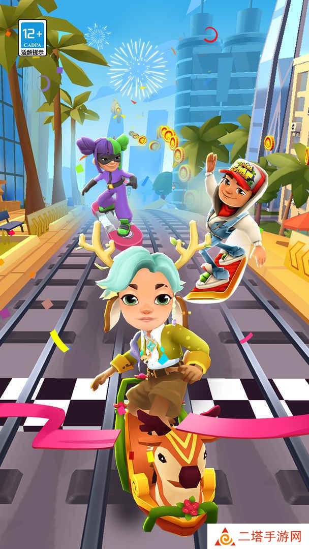 地铁跑酷国服全角色滑板装饰版是一款风靡全球的休闲跑酷游戏,以其精美的3D美式卡通画风、丰富的角色和滑板选择、多样的游戏模式以及刺激的跑酷体验吸引了无数玩家。在游戏中,玩家将扮演一名跑酷者,在地铁轨道上疾驰,躲避各种障碍物,收集金币和钻石,解锁更多角色、滑板和装饰,享受无尽的跑酷乐趣。
